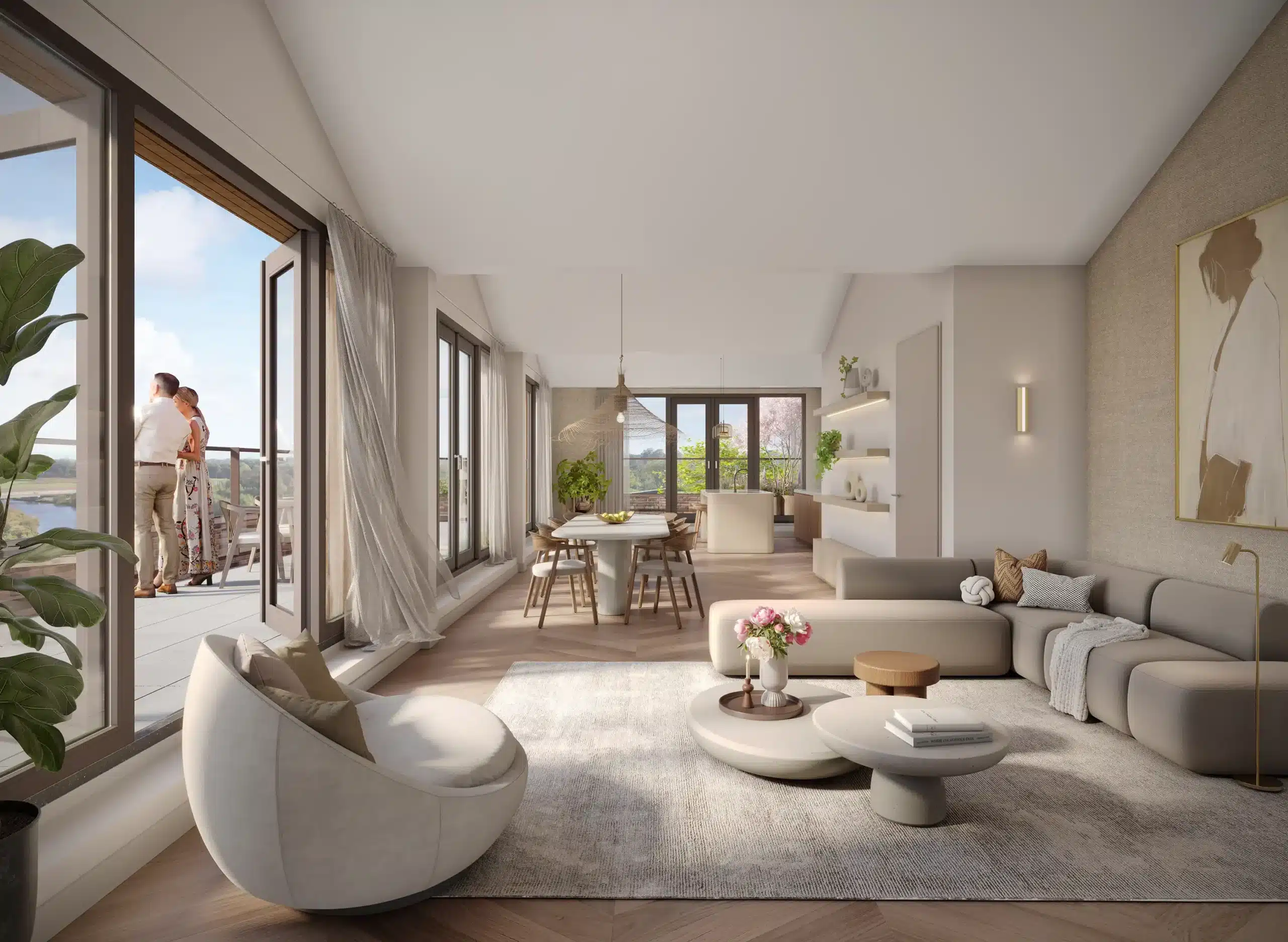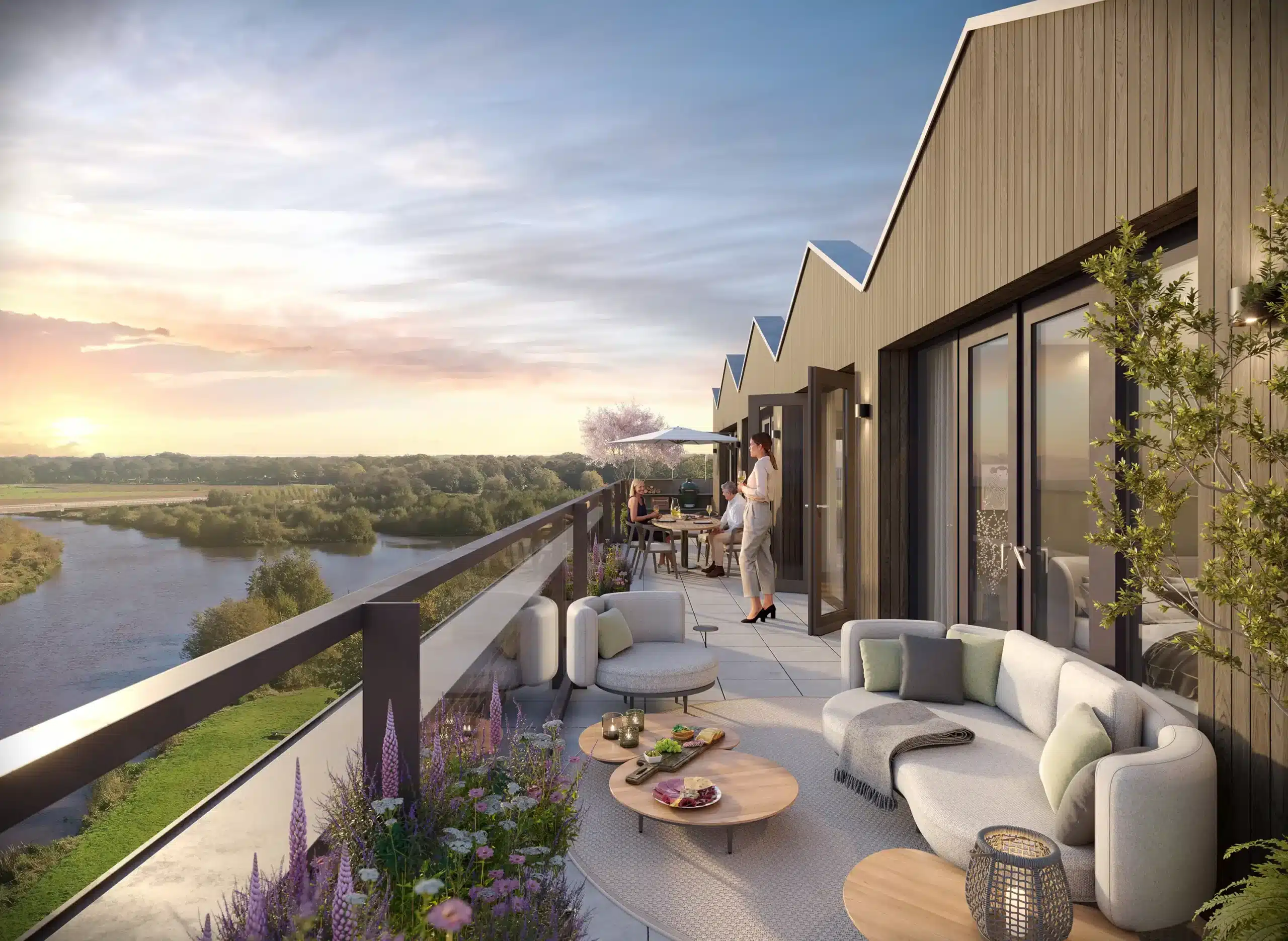 De meeste appartementen hebben mooi uitzicht op de Vecht, en zijn de raamkozijnen hierop ingericht, want die rijken van vloer tot plafond. Ieder appartement krijgt een eigen fietsberging met eigen stroomvoorziening, om bijvoorbeeld de e-bike op te laden.